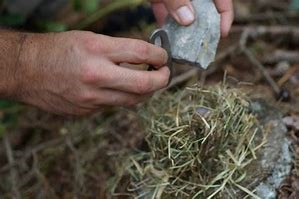 Door met een metalen voorwerp op vuursteen te slaan springen er warme vonken af
