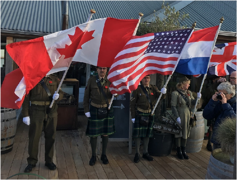 The flags of Poland, Canada, United States, The Netherlands, and the United Kingdom during the ceremony at Paal on november 9, 2019