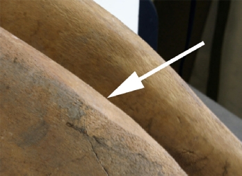 Zoals dat meestal gaat werd er daarna niet of nauwelijks meer naar omgekeken tot het ding ruim een jaar later mee genomen werd naar een cursus "Botdeterminatie" van de AWN. En omdat de onderkaak daar nu eindelijk eens wat nauwkeuriger bekeken werd kwam het bijzondere ervan aan het licht. De onderkanten van de twee kaakhelften vertoonden slijtsporen en dat wees er op dat ze ooit gebruik waren als glijders van een primitief sleetje.