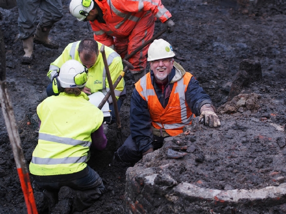 Hanneke luistert naar het verhaal van archeoloog Marcel de Koning
