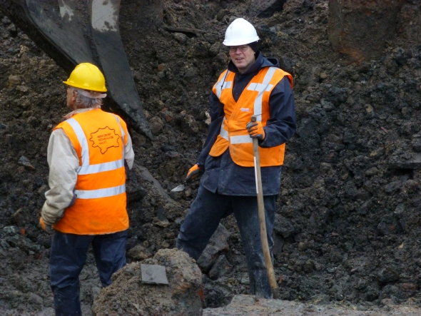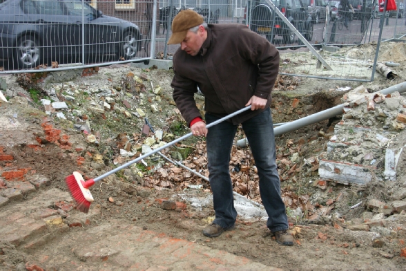 Eddy helpt bij het uitgraven van een waterput aan de van Waesberghestraat