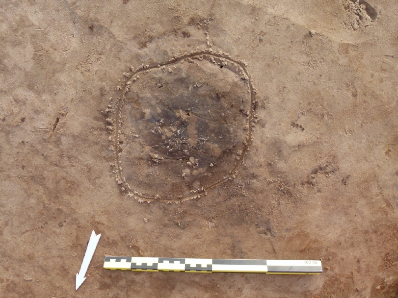 Kort na het afgraven van de akkergrond is er op de pleistocene zandgrond het met plastic afgedekte crematiegraf terug gevonden. Bij het schaven van de grond zijn verschillende vuursteenfragmenten gevonden. De grond uit het crematiegraf is volledig meegenomen en gezeefd, waarnaar de archeologen van Artefact/Grontmij momenteel verder onderzoek doen. Een Fysisch Antropoloog onderzoekt de crematieresten en het laboratorium voert een C14 datering uit. Er is dus nog geen zekere datering bekend en het staat ook nog niet vast of het bot wel menselijk is. Crematieresten werden vroeger niet vermalen, daarom vind je in de asresten ook nog stukjes bot terug.