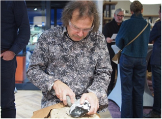 Hans Jongepier van Erfgoed Zeeland hield een boeiend betoog over archeologie in het Verdronken Land van Saeftinghe. Hierbij werd uitvoerig aandacht besteed aan dendrologie, vuursteen vondsten, pleistocene dekzandruggen, turf steken, maar ook aan een middeleeuwse vuurboet (een soort vuurtoren).