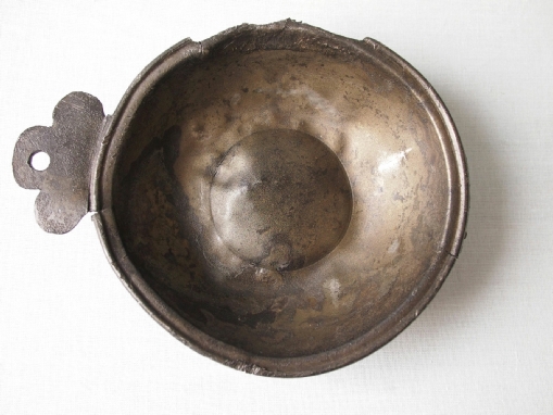 Zo werd door iemand van de Werkgroep Archeologie Hulst deze tinnen brandewijnkom gevonden.